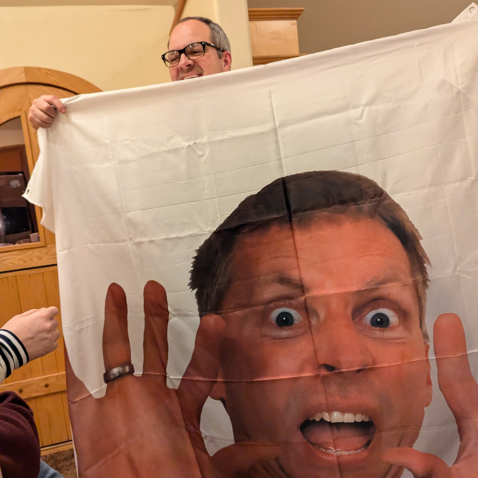 This was Brian’s first time at our party (his family moved here a few months ago) and he wasn’t prepared for the return of the Cosmo Shower Curtain.