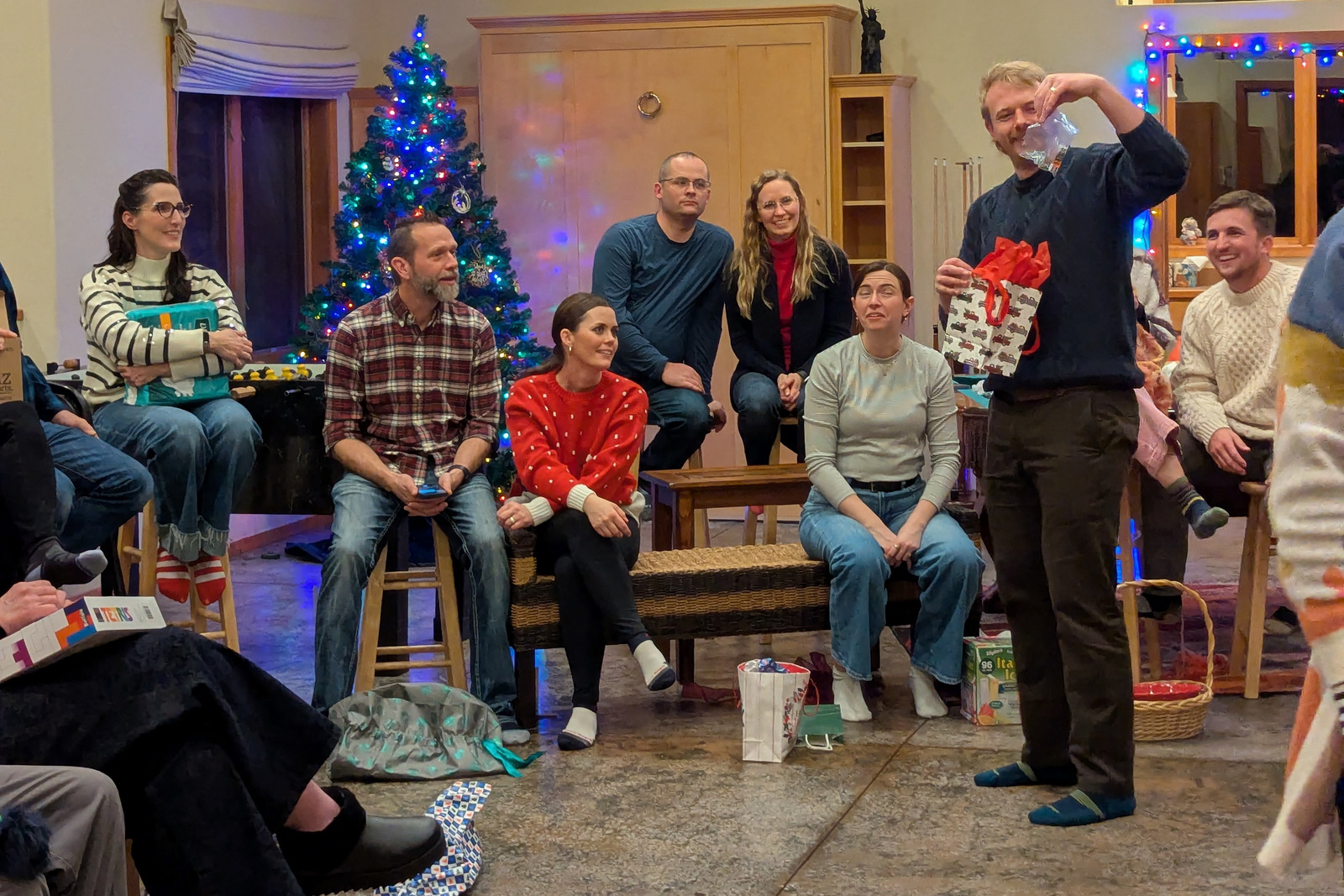 We have a Party House, so we figure we should host plenty of parties. It’s been tradition to have a white elephant party every December (dating back a couple of decades to Colorado, although we didn’t host those). The beauty of it: the party is actually very easy to host. Invite a bunch of people and ask them to bring food and a couple of odd gifts. All we have to provide is the venue.