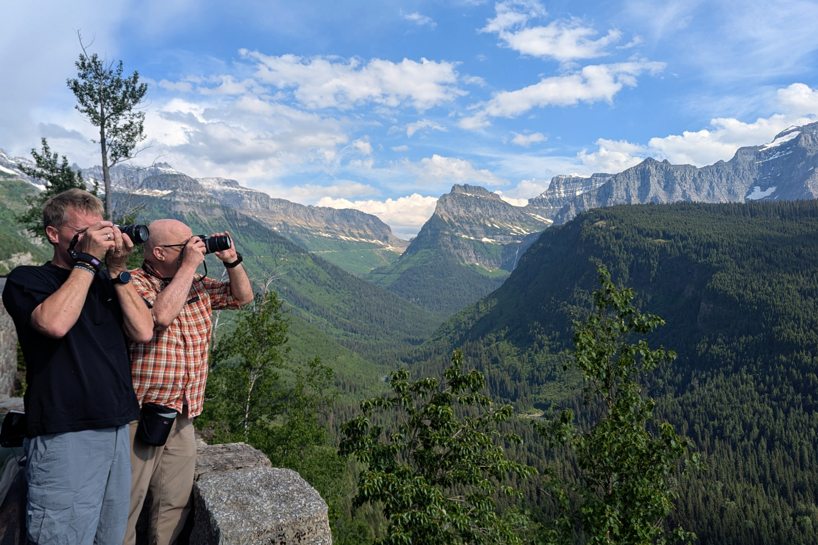 Naturally we headed to Glacier, where they oohed and ahhed as we climbed Going-to-the-Sun Road up to Logan Pass. I love this shot of me and Woody exercising our cameras:
