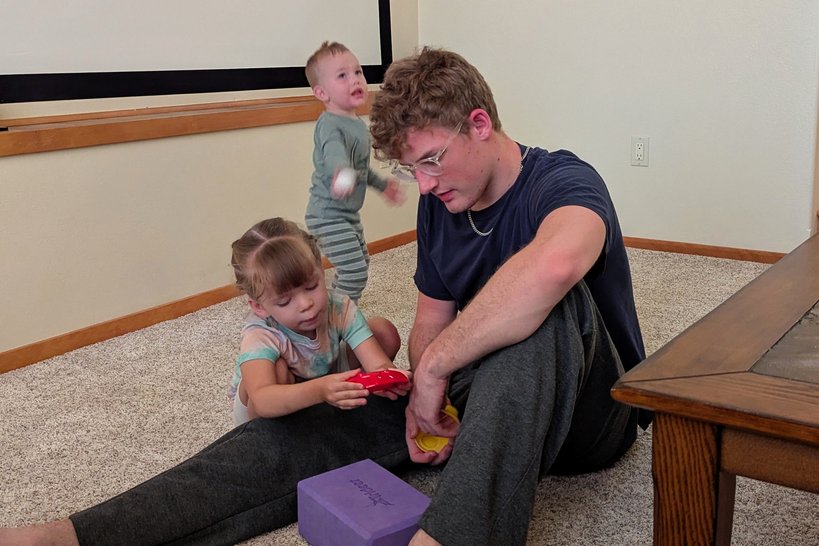 Notice Zack with us. He wasn’t working this week, and Emi (to his left) is his favorite cousin, so he came up to hang with her and the family. To his surprise, he was quickly adopted as a favorite uncle to little Millie and SJ. They loved climbing on him, tickling him, and showing him every little toy. He was a good sport about all of it.