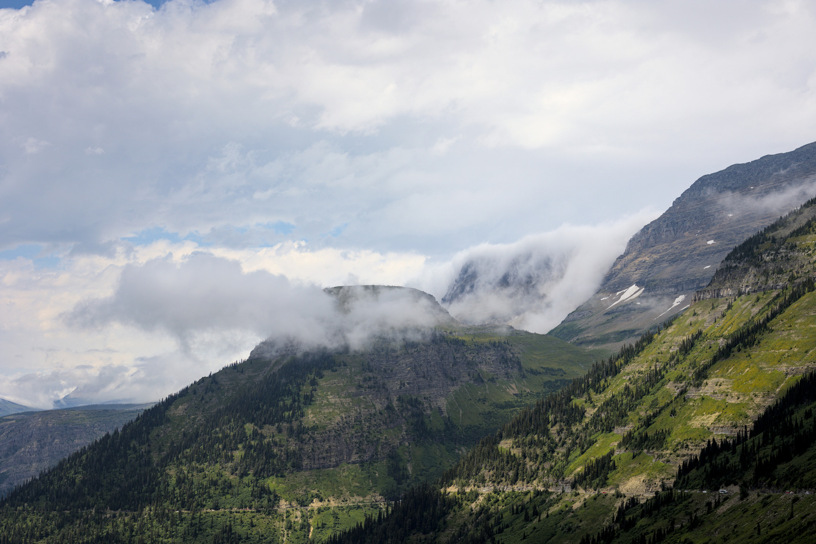 The weather was cloudy, which made for some interesting views. In the shot above, you can see a fog bank rolling across the mountain ridge in the center and cascading down the rock face. It was really cool to see.