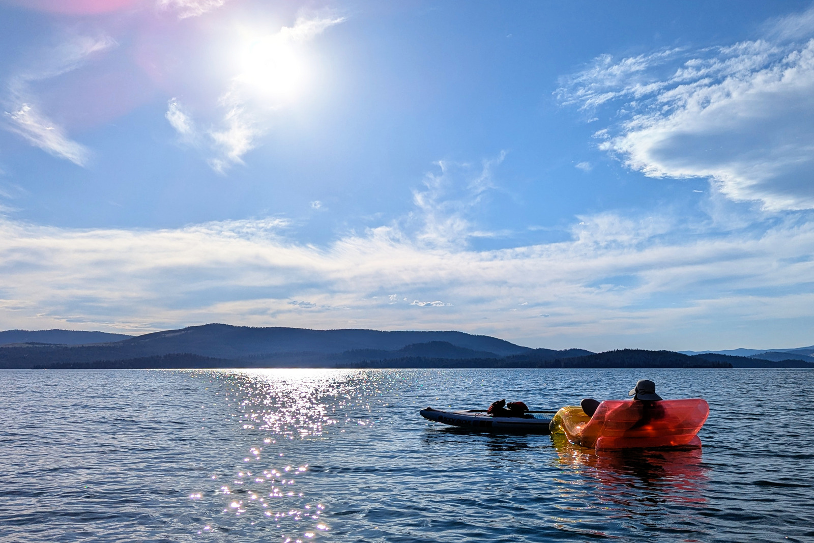 Kyra bought a huge inflatable easy chair and loves using it on the lake. She ties it to a paddleboard and paddles out into the lake (it’s easier to paddle a board than a chair). Then she drops anchor– she actually bought a small boat anchor for this!– and climbs into her chair. She can wear her big sun hat and read a book while bobbing gently on the waves. What a life.