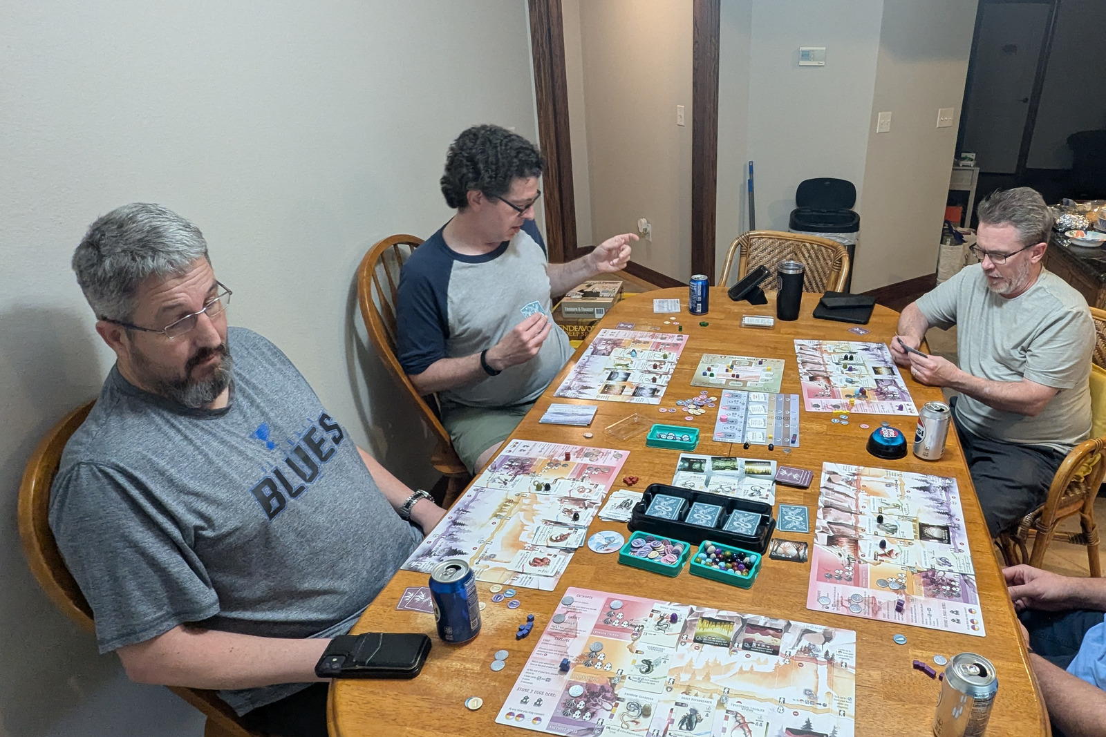 I missed last year’s annual board game soiree with the Magnificent Seven, so I was excited for this year’s get-together. Dirk was hosting in Carthage, so in the spirit of these sorts of things it became known as Carthage-Con. It’s a long drive from Montana to Missouri, but I enjoy a good road trip so I loaded a stack of games into Nebula and headed east.