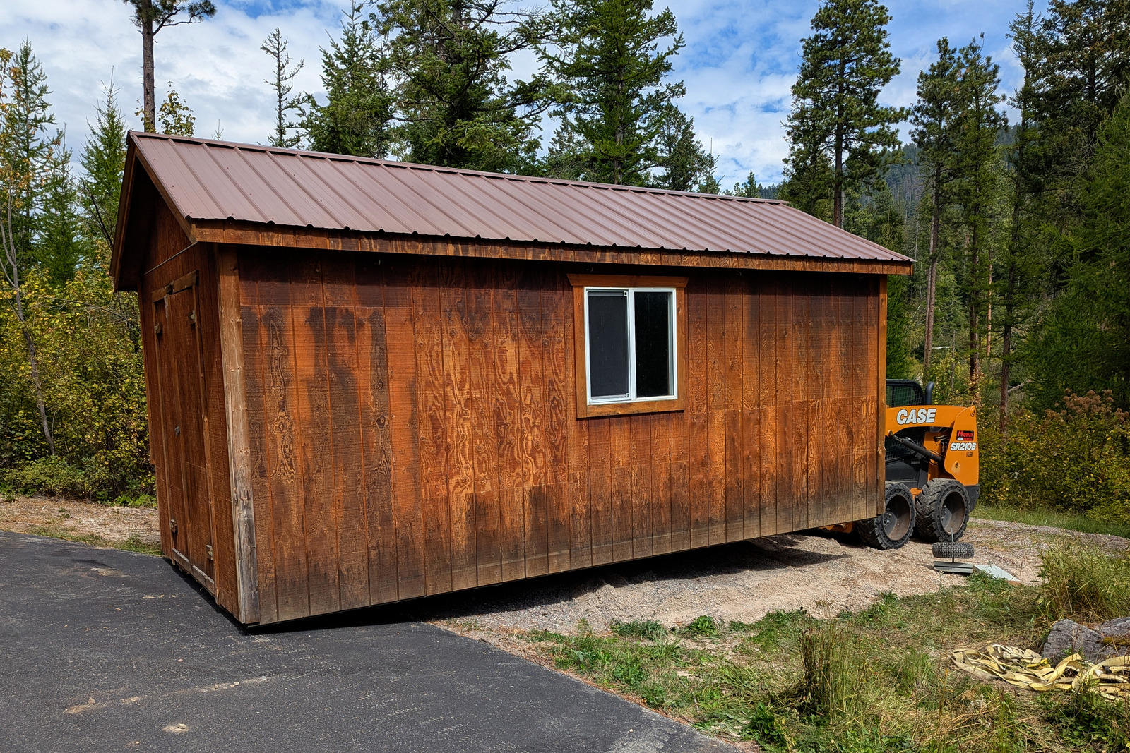 They maneuvered it into position on the leveled gravel I’d laid about two months ago.