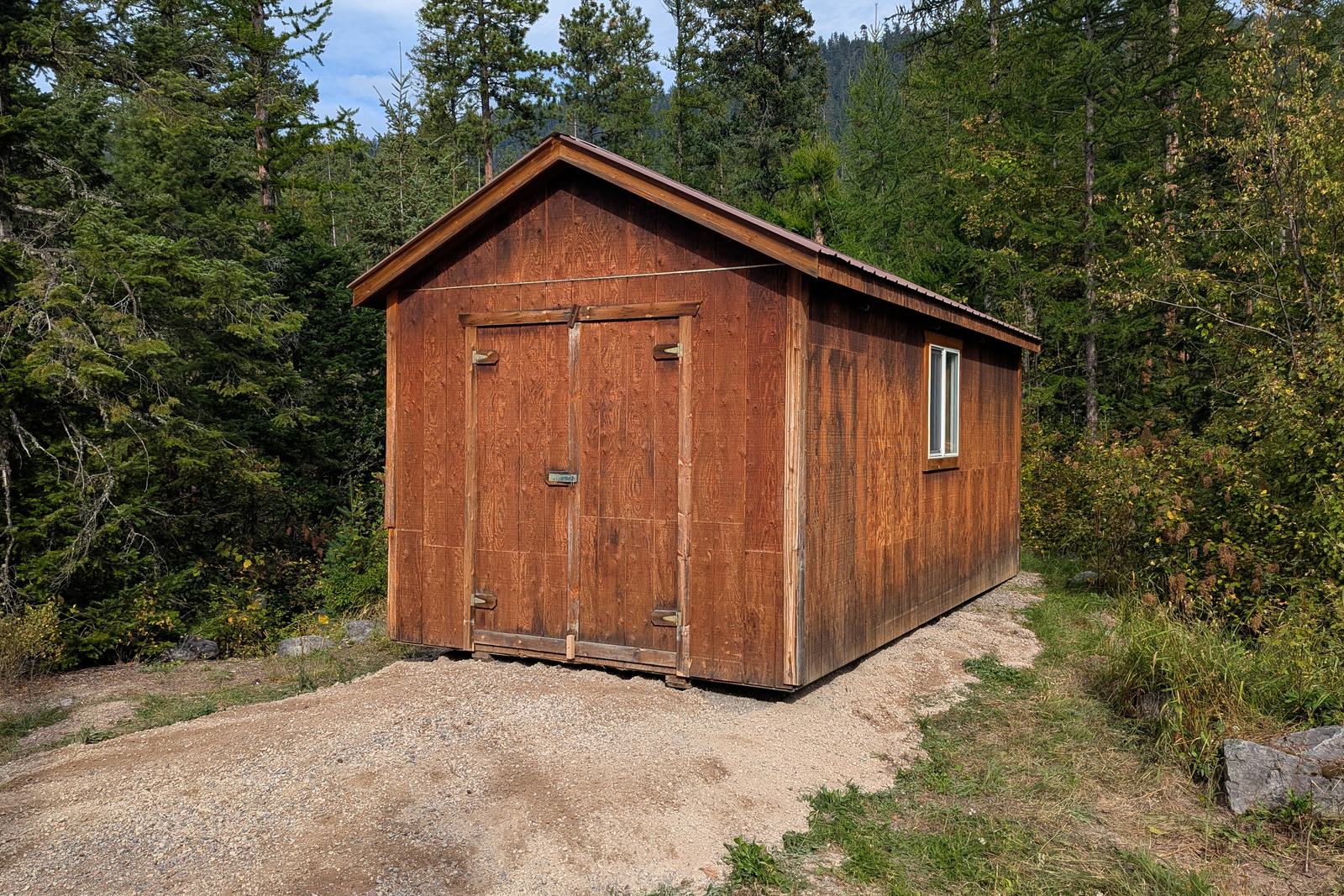 Now it’s only a hundred feet from the house, making it much more convenient for storing our lawnmower, wheelbarrow, piles of tools, and so on. Yay!