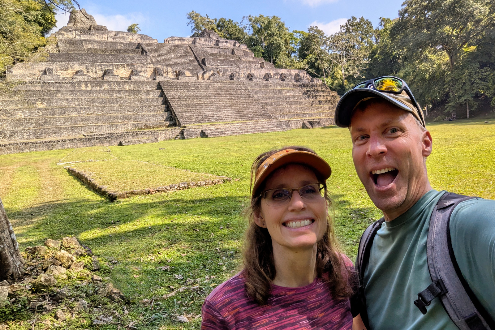 Once we had wheels, we headed across the country– about a two-hour drive– and spent five days with Dave and Jeanele. They were excellent tour guides, taking us to several places they’d visited and enjoyed. We started at Caracol, a Mayan site with massive temples, a palace, game courts, and scattered residences. It was easily the most impressive set of ruins I’ve visited.