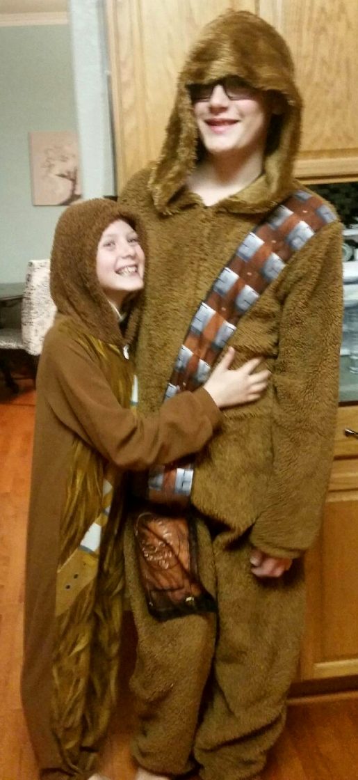 Last night we went to a party at a friend’s house, and Zack didn’t want to “get all dressed up” (he was wearing pajama pants). So he pulled on his Chewbacca pajamas and we headed out.