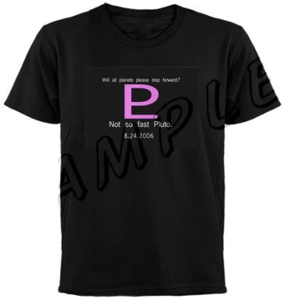 Or even this t-shirt (“Will all planets please step forward? … Not so fast, Pluto.”)
