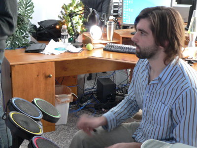 Today, to celebrate the impending holiday, we decided to goof off all afternoon at the office. So Rob brought in his Wii and Xbox and we jacked them into our projector and some speakers. Then we cranked Rock Band and played some Mario Kart, interspersed with the usual games of foosball and liberal helpings of Cheetos and Double Stuf Oreos.