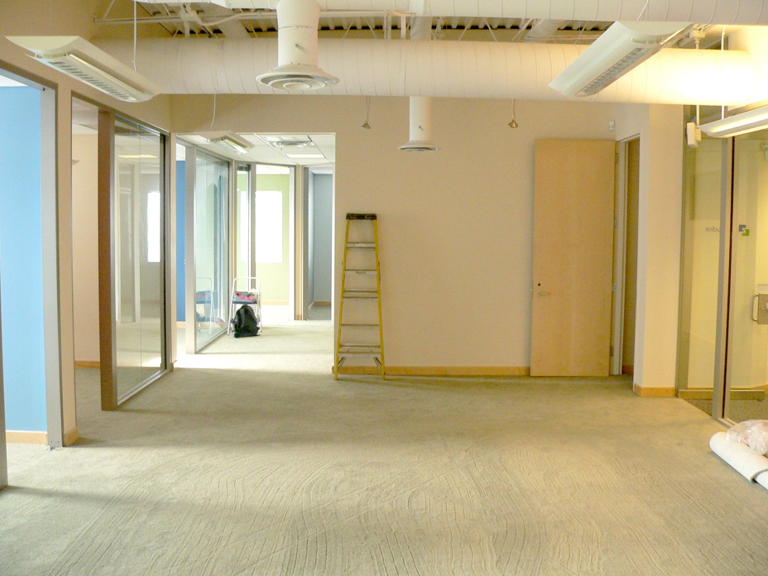 Well, time went by and I worked out a deal. After signing all of the papers it was time to give this place some character. The first order of business: remove all of the cubicles and existing furniture. The other company actually sold all of it to some business furniture auction place, so it cleared out the space.
