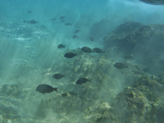 As we continued along the southern highway, the landscape abruptly changed. In the lee of the mountain, there isn’t much moisture, so southern Maui is actually a desolate brown land. All of the moisture– more than 400 inches a year– falls near Hana, and when the clouds blow over the mountains they have no rain left to give. Everywhere you look, the land is peppered with black lava boulders. The difference from the lush green jungle just a few miles away is astounding.
