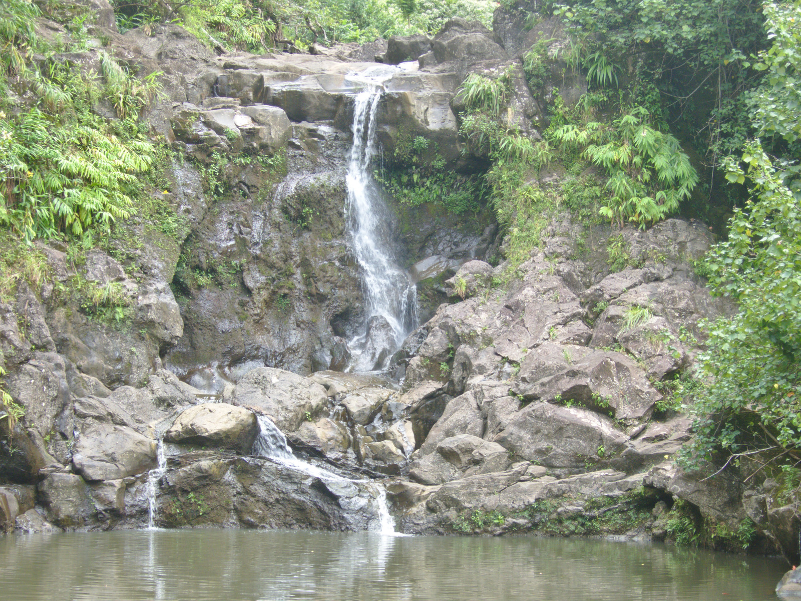 We stopped at a beautiful waterfall alongside the road, somewhere near Mo’omo’onui Gulch (not a beautiful name).